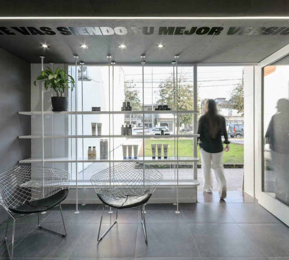 En el barrio de Fisherton, Rosario, el estudio NASA Arquitectura abordó la transformación de un local comercial existente para convertirlo en una peluquería contemporánea. El desafío principal radicaba en dotar de una identidad clara y diferenciada a un espacio original que carecía de cualidades espaciales destacables.