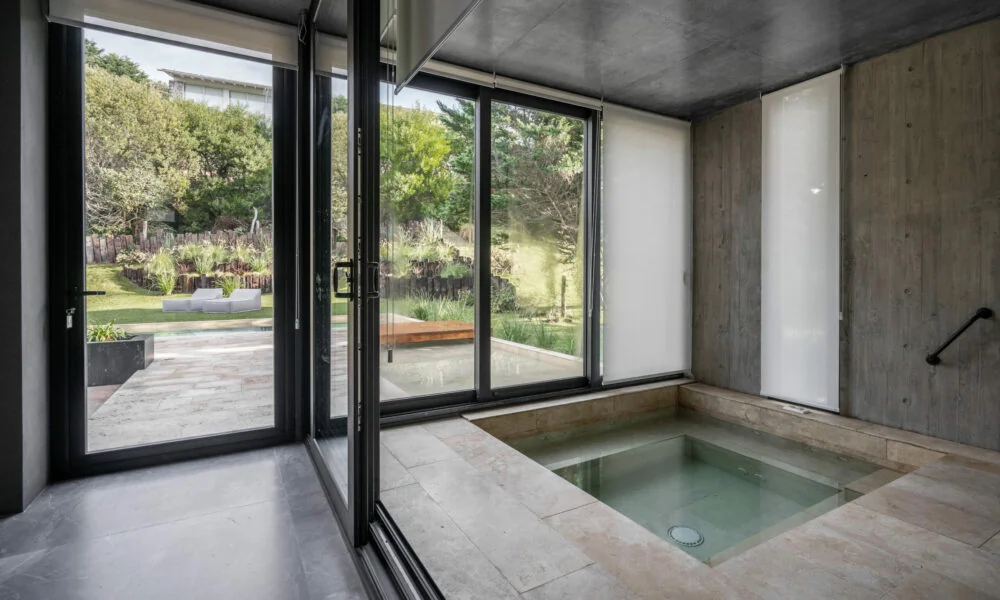 Un diseño audaz y contemporáneo que fusiona el hormigón visto con la naturaleza, creando una experiencia única en la costa atlántica.