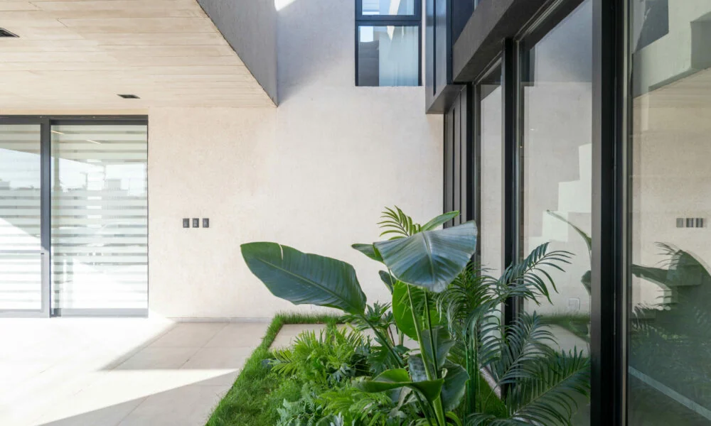 Uno de los aspectos más innovadores del diseño es la incorporación de patios intermedios estratégicamente ubicados. Estos no solo cumplen una función estética, sino que también actúan como elementos de zonificación entre los distintos espacios, proporcionando independencia y privacidad a cada área de la casa. Además, estos patios crean un microclima agradable, favoreciendo la ventilación cruzada y aportando luz natural a todos los rincones de la vivienda.