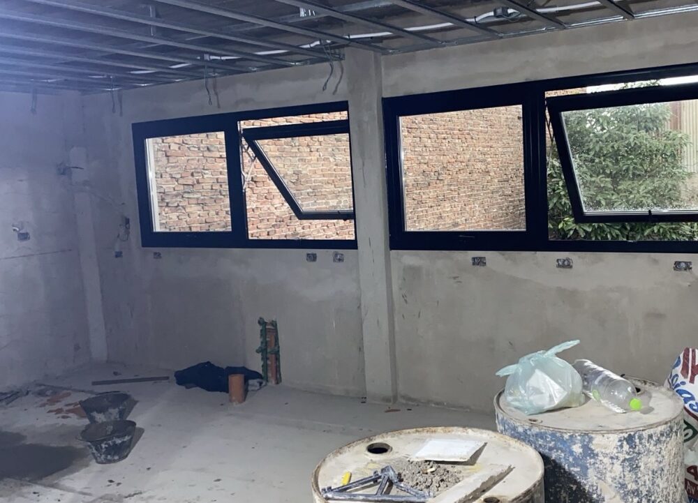 Baldoni lo demuestra con un caso reciente: una cocina que se encuentra apenas en su primera etapa constructiva, todavía sin instalaciones completas, terminaciones ni mobiliario.