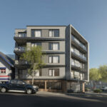 Desarrollos Patagonia presenta España y Libertad, un edificio de uso mixto en esquina, a metros del Centro Cívico y de la costanera, con locales comerciales, 63 departamentos y 50 cocheras, proyectado por la Arq. Alicia Albandoz y su equipo.