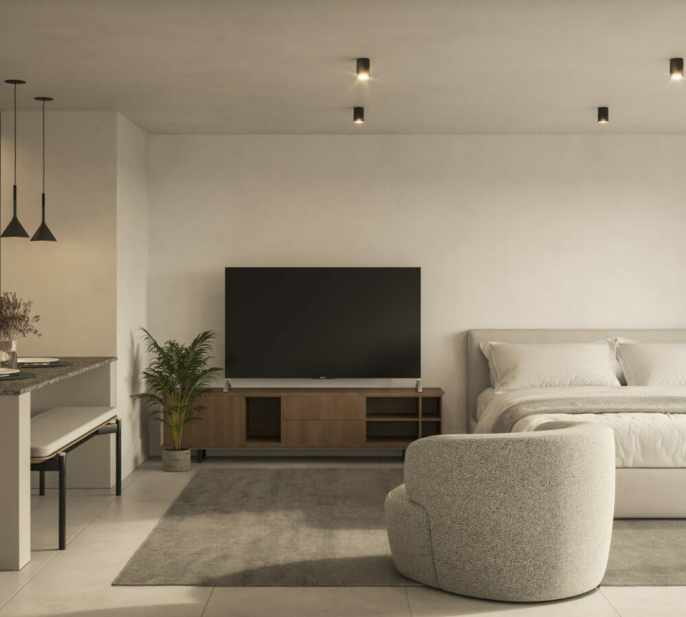 En España y Libertad, la calidad se define desde el diseño interior de cada departamento, donde se combinan equipamiento funcional, eficiencia energética y terminaciones cuidadas.