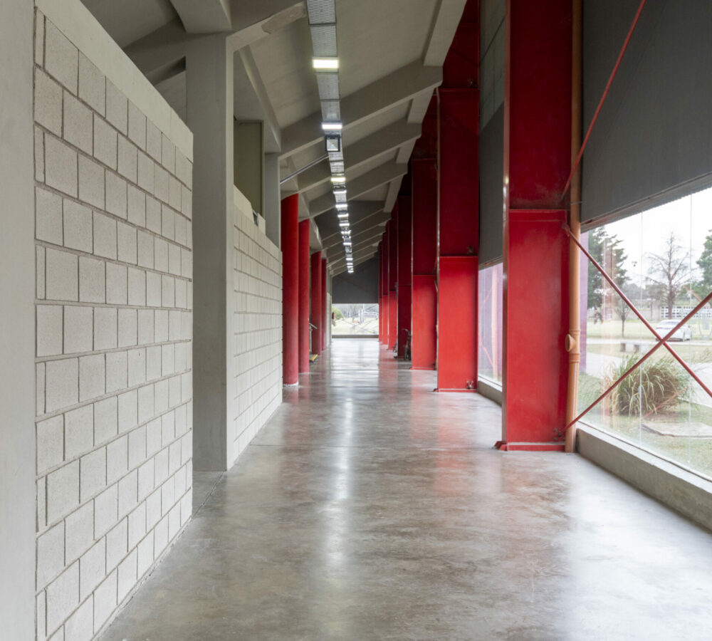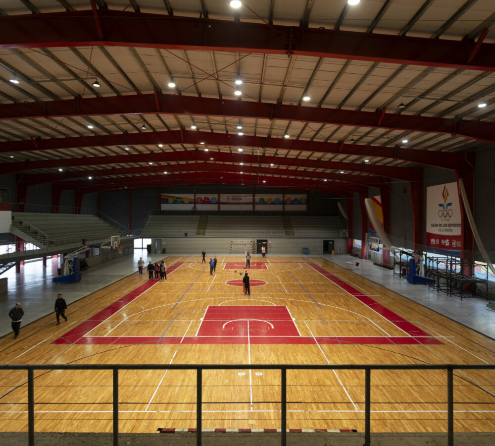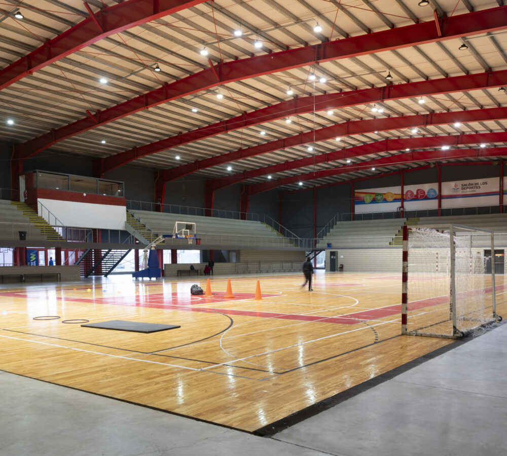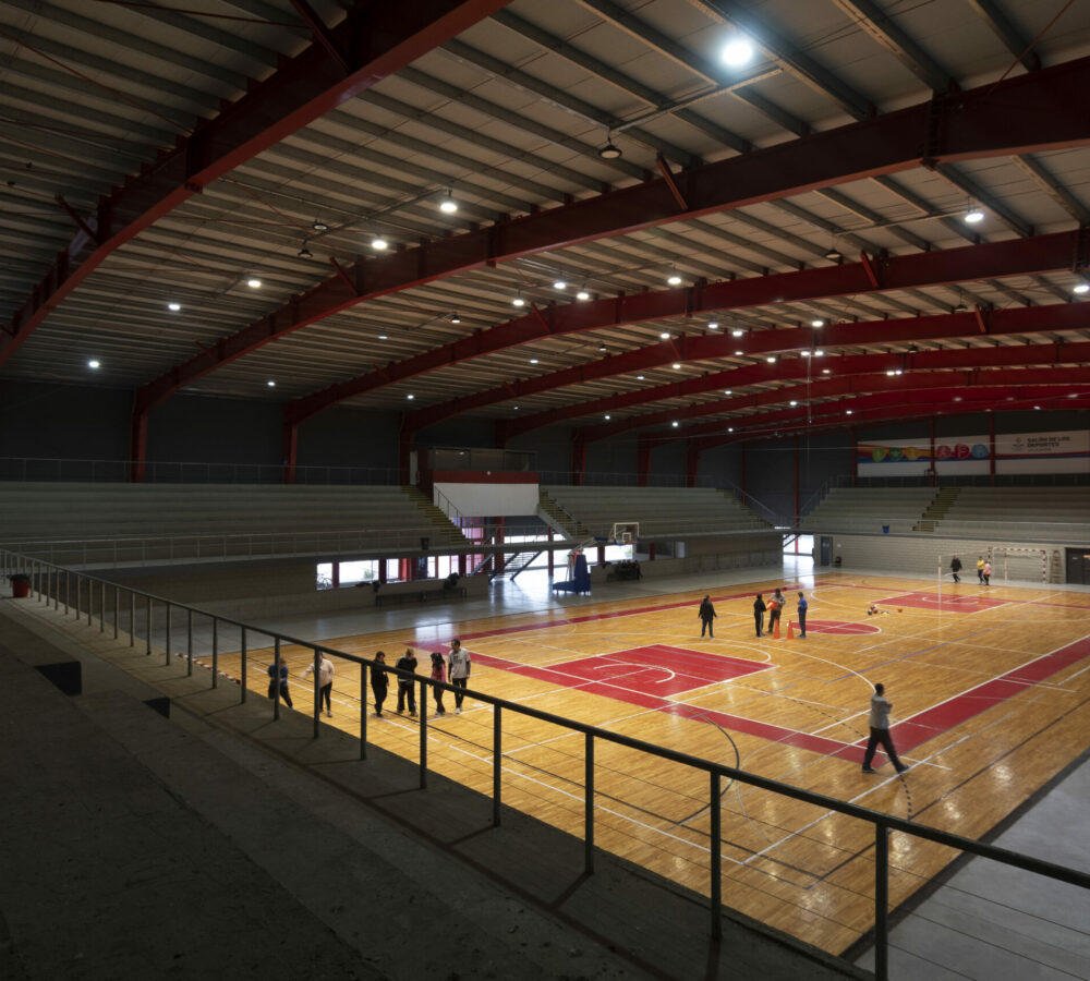 Diseñado para responder a requerimientos municipales y universitarios, este gran volumen deportivo está pensado para albergar prácticas de básquetbol, vóley y handball con capacidad para 1.500 espectadores. La propuesta combina una gran envolvente metálica que contiene la cancha central con soluciones constructivas tradicionales en las gradas y servicios (hormigón armado y mampostería), priorizando confort, visibilidad y estándares funcionales para eventos de distinta escala.
