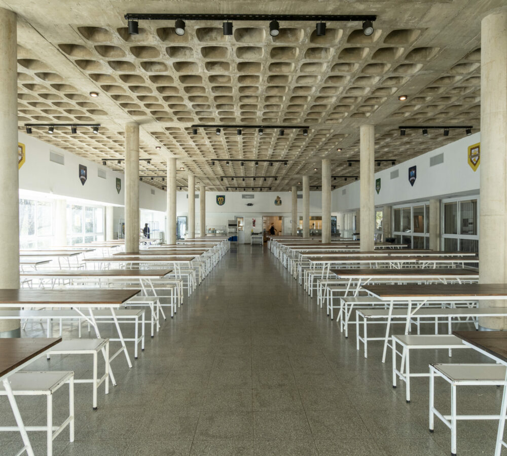 El SUM responde a la necesidad de un espacio comedor y multiuso integrado al patio escolar. El volumen propone una planta libre con capacidad para más de 300 personas, galerías que funcionan como ante-salas y un semisótano para estacionamiento. El proyecto se integra a la trama escolar existente y al paisaje del patio, ofreciendo un nuevo frente y una imagen contemporánea para la institución.