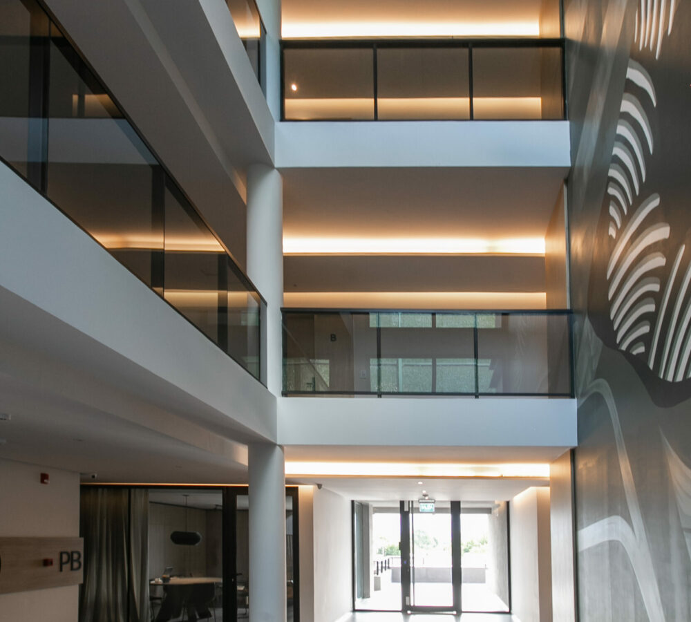 Este encargo corporativo para Nissan Argentina nace de la necesidad de insertar una sede técnica en un contexto fabril poco amable. La solución proyectual genera un “caparazón” envolvente que crea un fuelle de transición entre el exterior industrial y los espacios de trabajo, liberando el perímetro para oficinas y concentrando los servicios y salas técnicas en el núcleo central. El resultado es un edificio racional en su funcionamiento interior y con una piel exterior que atenúa el entorno.