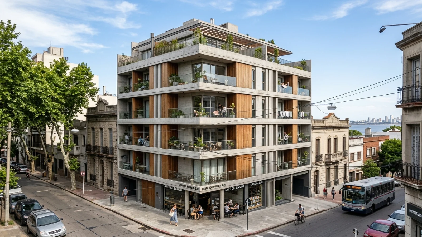 La arquitectura contemporánea uruguaya, particularmente en el segmento de edificaciones mixtas de escala media, apuesta por un lenguaje visual sobrio y una materialidad honesta. Se observa una preferencia por fachadas que dialogan con el entorno sin imponerse, privilegiando la durabilidad y el bajo mantenimiento. Esta contención estética no es una moda pasajera, sino un criterio de diseño que responde a una demanda de permanencia y a una valoración del patrimonio construido, buscando una integración armónica en el tejido urbano existente.