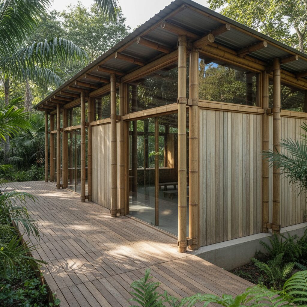Durante el período 2018-2023, observamos un incremento en la investigación académica y en proyectos piloto que exploraban el bambú (especialmente guadua o especies adaptadas) y maderas rápidas para usos estructurales secundarios, revestimientos, paneles y elementos decorativos. La aplicación más evidente y exitosa se ha dado en proyectos de menor escala, autoconstrucción asistida o arquitectura de paisaje, donde la flexibilidad normativa y la menor exigencia industrial permitieron explorar sus virtudes estéticas y táctiles. Particularmente, en el litoral y el este del país, surgieron iniciativas para la creación de estructuras ligeras y temporales, donde la capacidad de crecimiento acelerado del material y su relativa facilidad de manipulación inicial fueron valoradas. Sin embargo, estas experiencias, si bien enriquecedoras, distan de la integración masiva que se proyectaba.