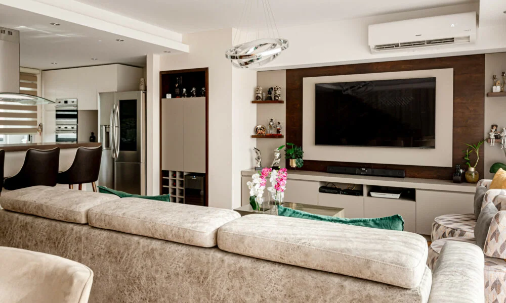 Este logro fue el resultado de la utilización del concepto abierto con medidas generosas y no delimitadas, sumadas a la elección de paños vidriados de grandes dimensiones para generar amplitud espacial y permitir un excelente asoleamiento teniendo en cuenta la privilegiada orientación.