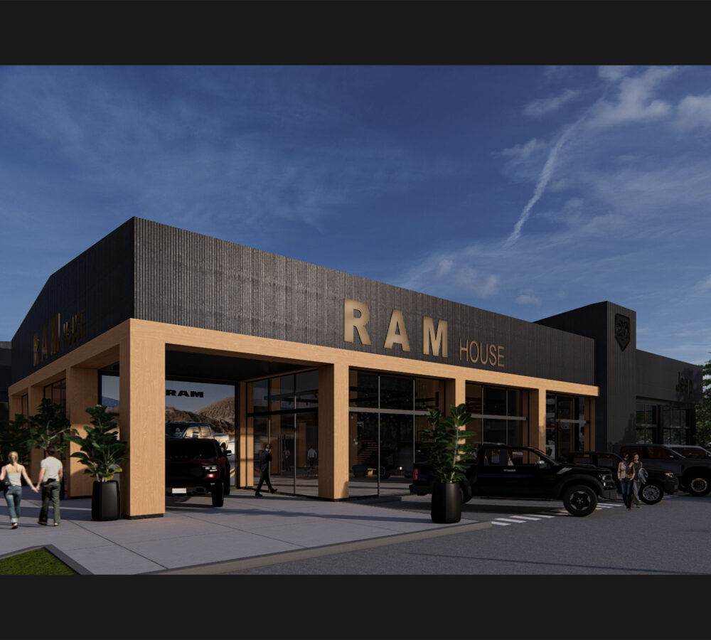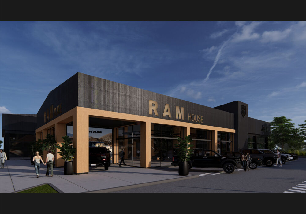 El proyecto integra áreas de exposición, oficinas administrativas, depósitos y salas técnicas, además de espacios de atención y entrega de vehículos 0 km.