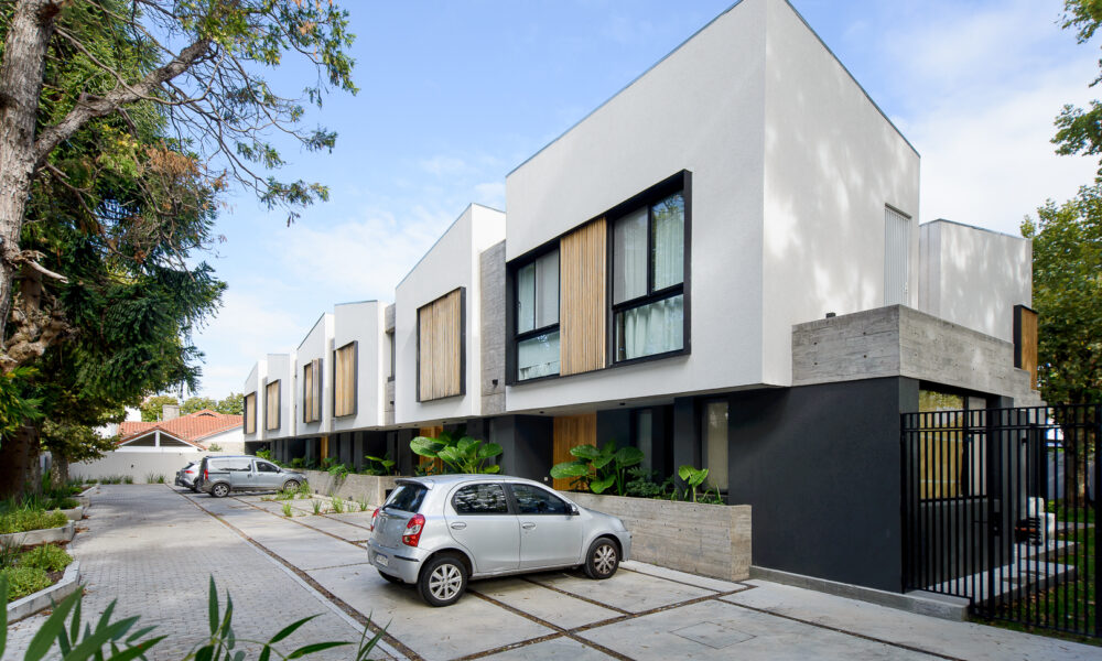 Ubicado sobre Avenida del Libertador, en Beccar, El Cortijo es un conjunto de seis viviendas agrupadas en dúplex, cada una con jardín propio y patio interior.