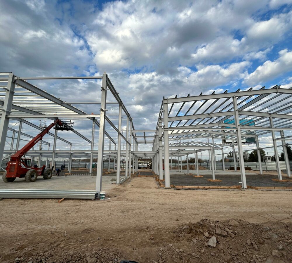 La obra se desarrolla con sistemas constructivos en seco, estructura metálica, entrepisos con steel deck y cerramientos con paneles de aluminio compuesto, reflejando un alto estándar de terminaciones y un cronograma de ejecución altamente exigente.