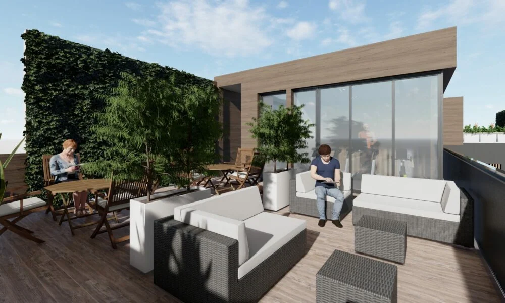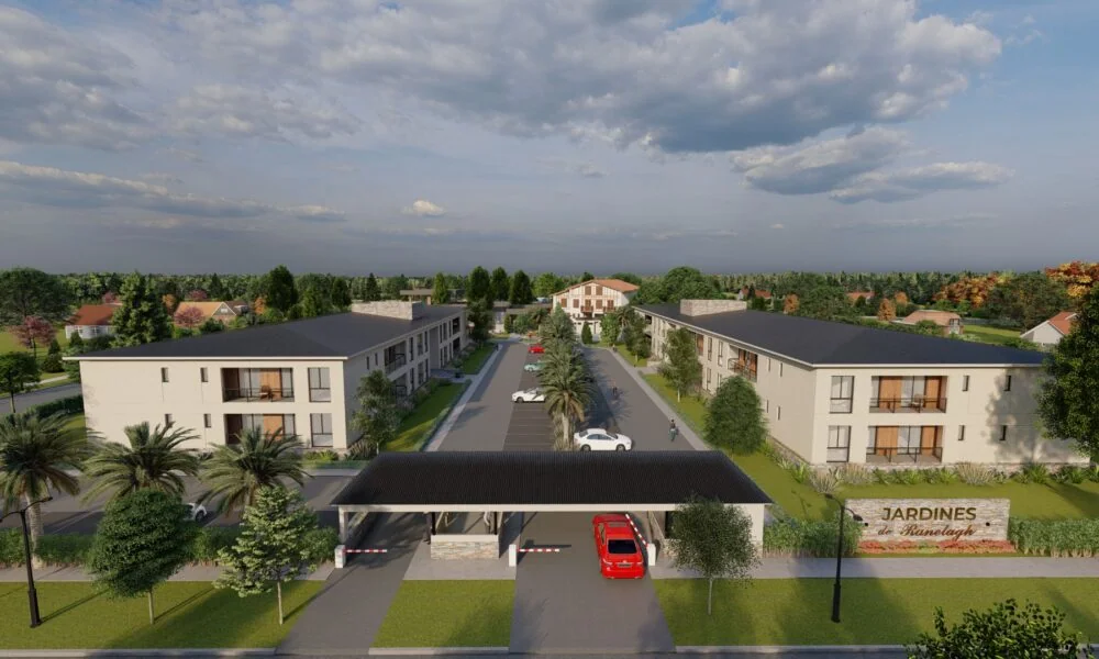 Con 42 unidades distribuidas en dos volúmenes de dos niveles y medio, el proyecto apuesta por la amplitud y la integración paisajística. El gran pulmón verde central, junto con la preservación de la casona histórica del predio, refuerzan la identidad de Ranelagh como ciudad jardín.