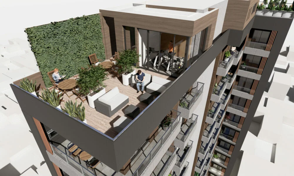 Completamente eléctrico, el complejo cuenta con instalación de agua fría y caliente, equipamiento de primera calidad y un sector comercial con una galería y un local gastronómico de altura y media, pensado para dinamizar la vida urbana del entorno.